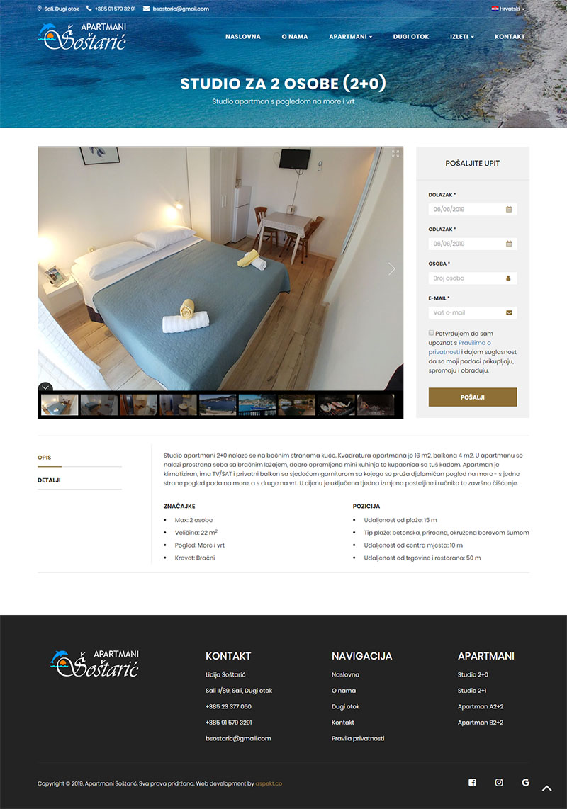 ASPEKT Smještaj je rezervacijski sustav namijenjen iznajmljivačima. Uključuje web stranicu sa modernim i responzivnim dizajnom te CMS sustav za samostalno upravljanje sadržajem.